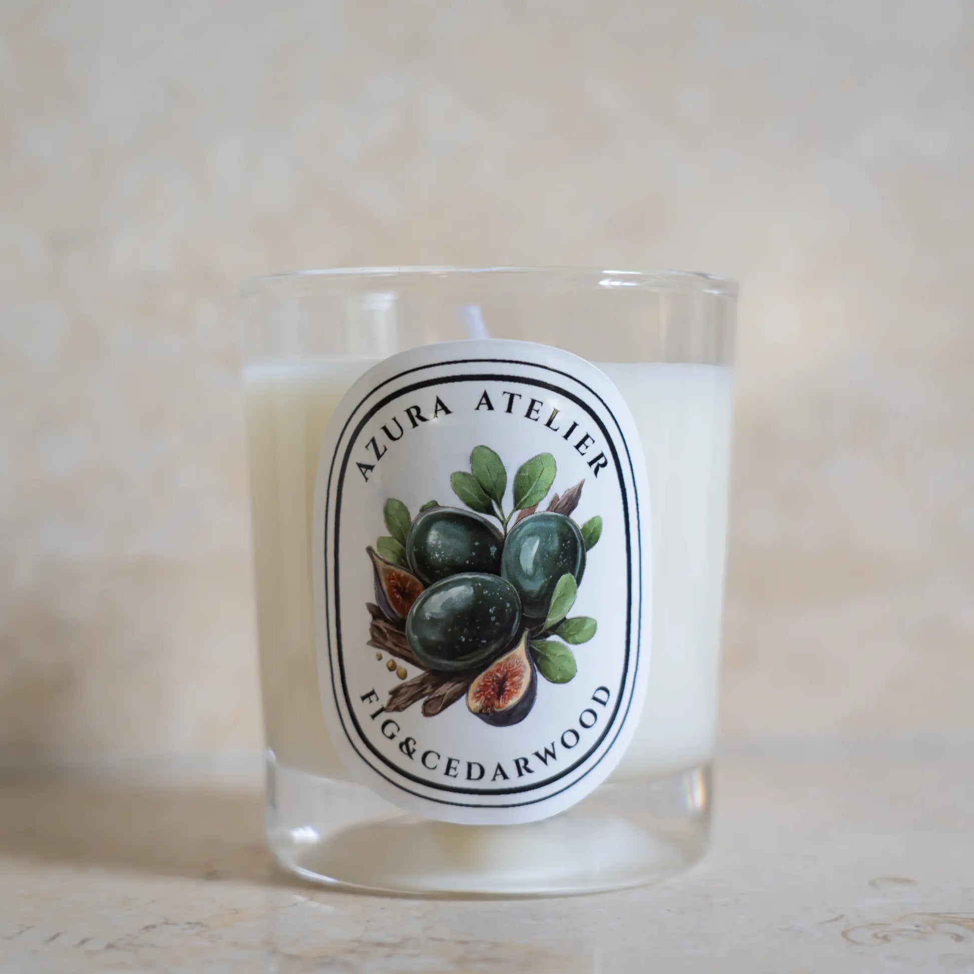 This Azura Atelier candle combines the sweet, fruity note of fig with the warm, woody depth of cedarwood. The fragrance feels rich, cozy, and comforting. Fig adds a soft, natural sweetness, while cedarwood brings grounding warmth. Light it to create a welcoming and soothing atmosphere in your space.