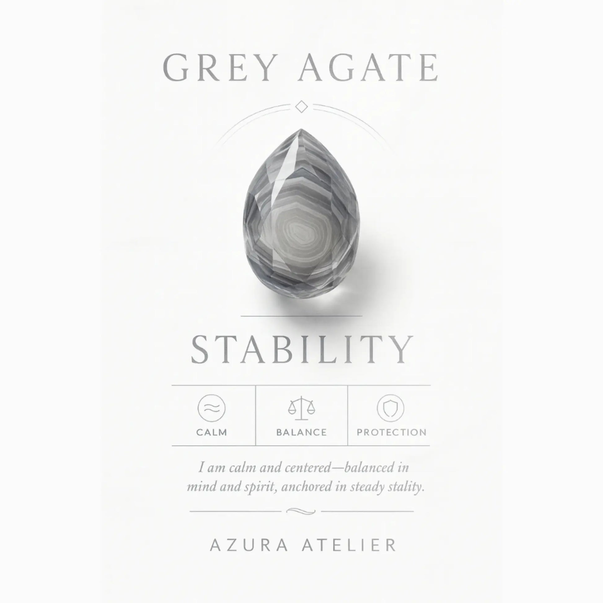 Part of our Signature collection, our Auric Equilibrium Bracelet blends Golden Sunstone, Aventurine, and Grey Agate for bright, steady momentum. Golden Sunstone shows peach‑to‑gold tones with lively sparkle, loved for warmth, confidence, and get‑going energy. Aventurine is soft green with gentle translucence and a faint mica shimmer linked to opportunity, easy growth, and calm good luck. Grey Agate brings ash‑to‑smoke banding and a soothing, grounded feel known for balance and steadying the mood. Worn together, they feel like sunny motivation anchored by serene composure.