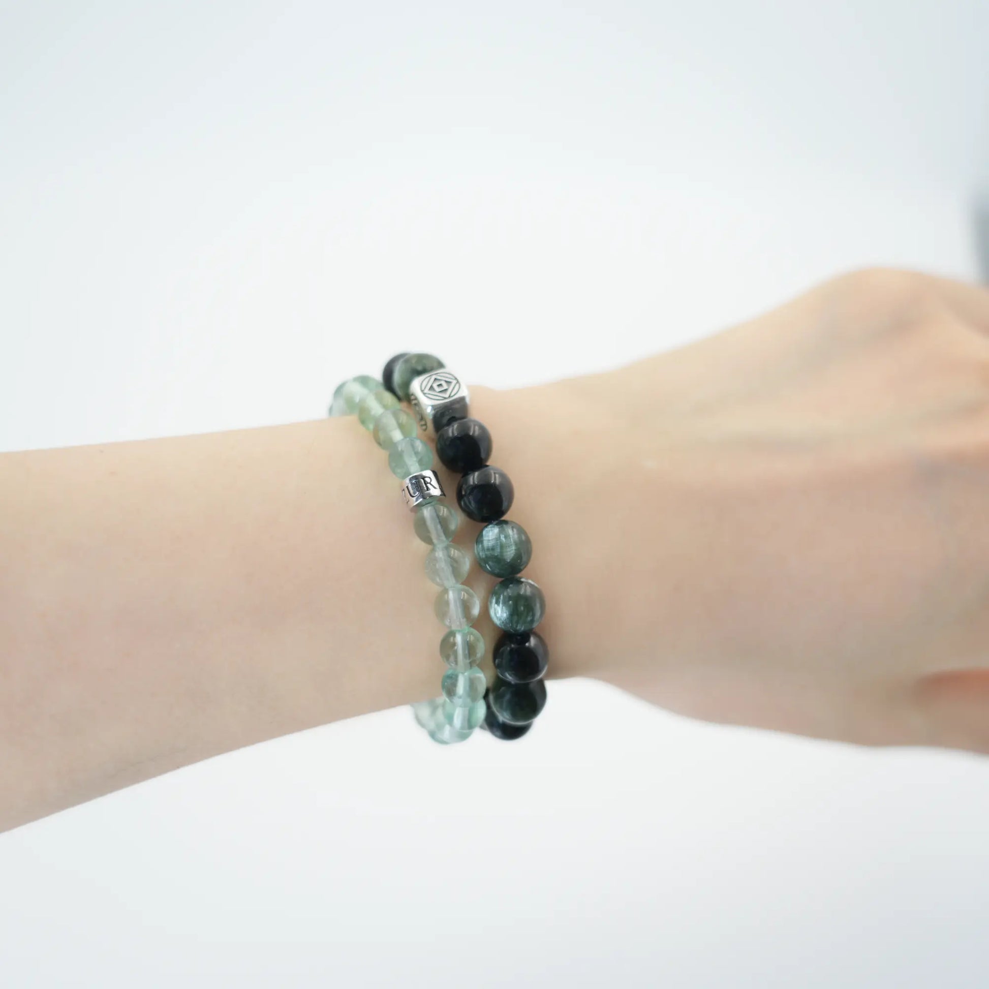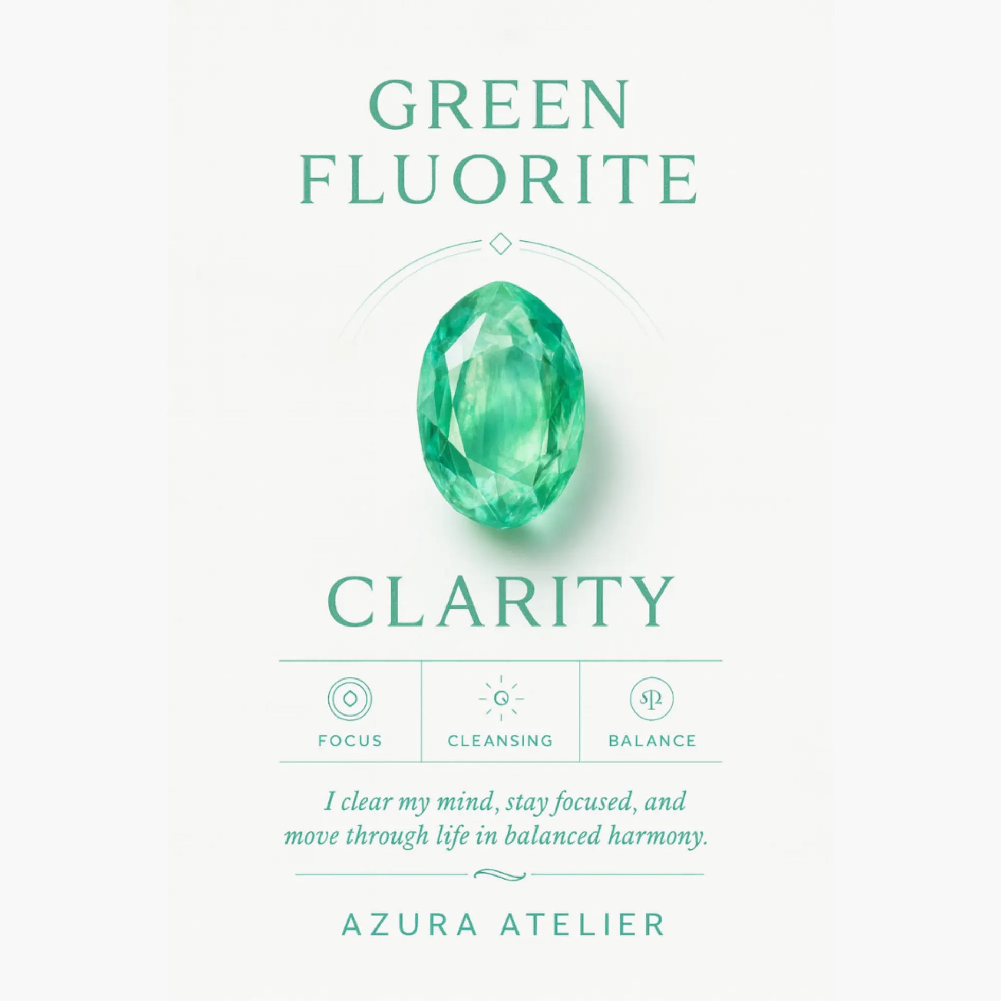 Our Verdant Clarity Bracelet centers on Green Fluorite. This stone shows spring‑green to sea‑glass tones with airy, crystal‑clear veils and gentle natural banding. It’s loved for refreshing clarity and cleansing calm helping organize thoughts, release mental static, and refocus with steady ease.