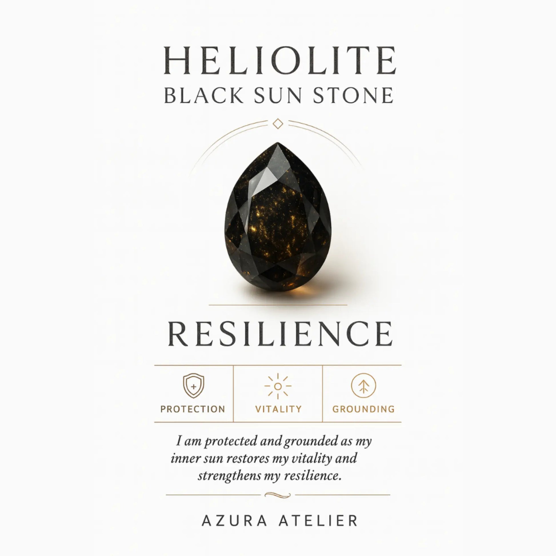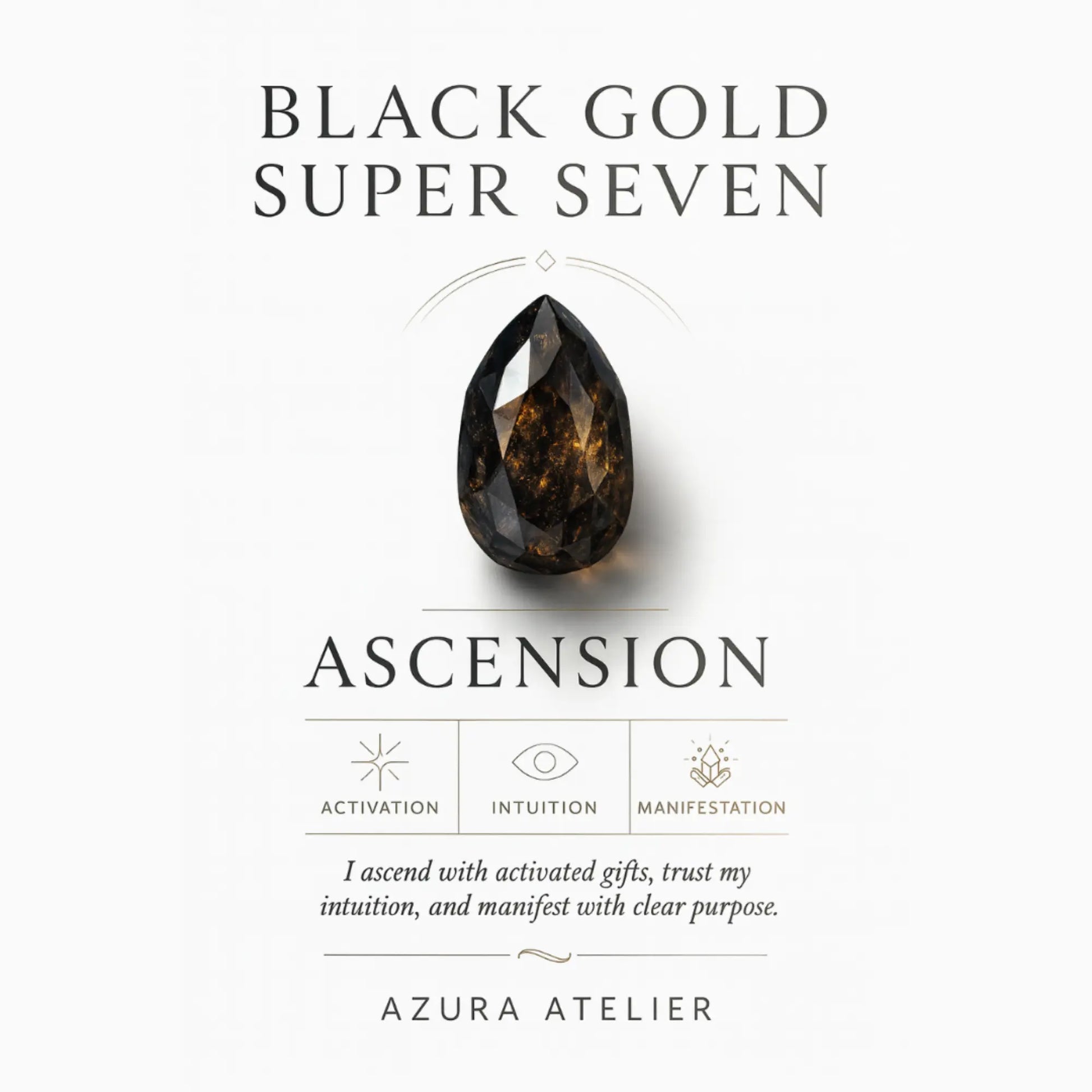 Part of the AzuraVintique collection, our Grounded Breakthrough Bracelet unites Smoky Quartz, Black Gold Super Seven, and Heliolite Black Sunstone for protected clarity with forward drive. Smoky Quartz features translucent charcoal veils, prized for its grounding and clearing properties, which help reduce mental noise. Black Gold Super Seven has inky depth with complex, golden‑toned inclusions linked to intuitive alignment and gentle amplification. Heliolite Black Sunstone is a dark feldspar with a warm, golden flash associated with confidence and energizing momentum. Together, they provide steady protection and a clear push through blocks.